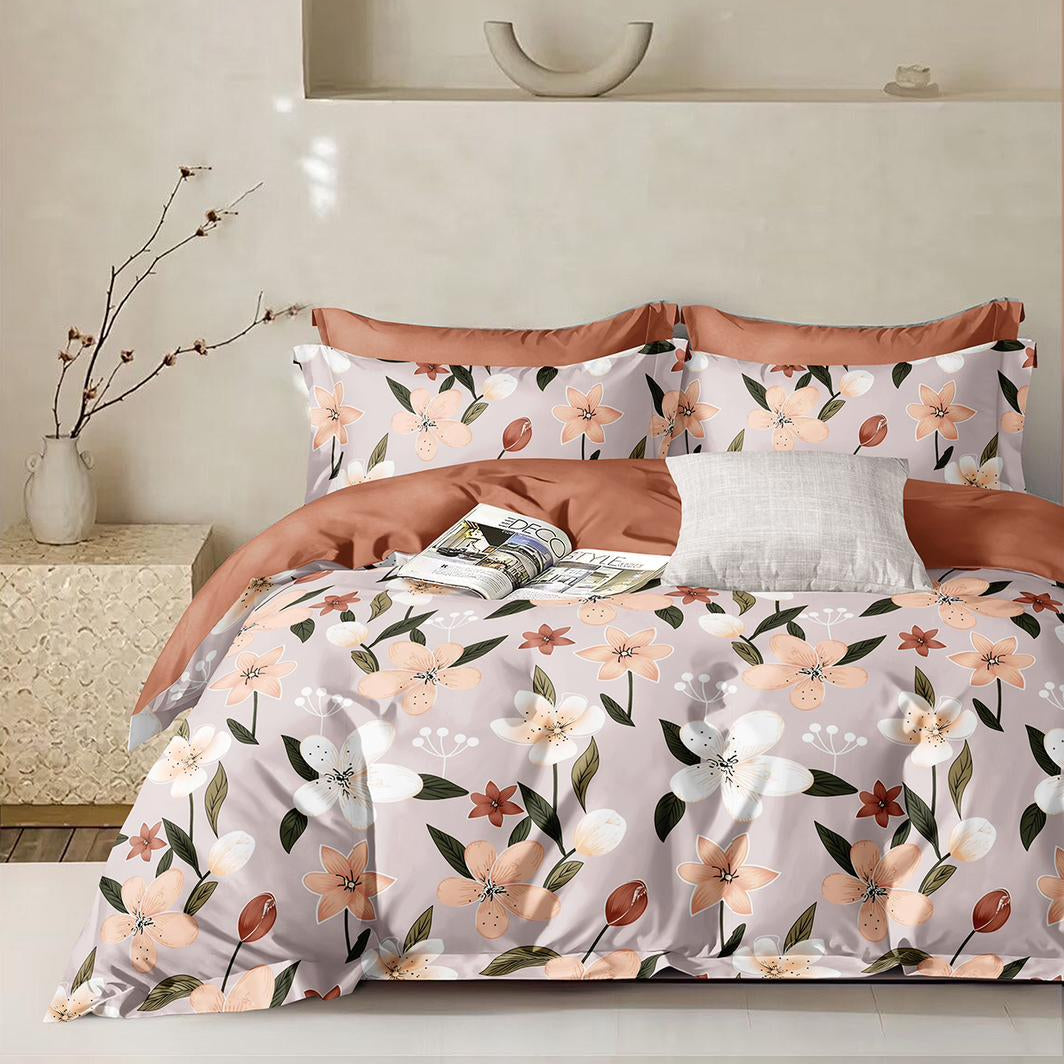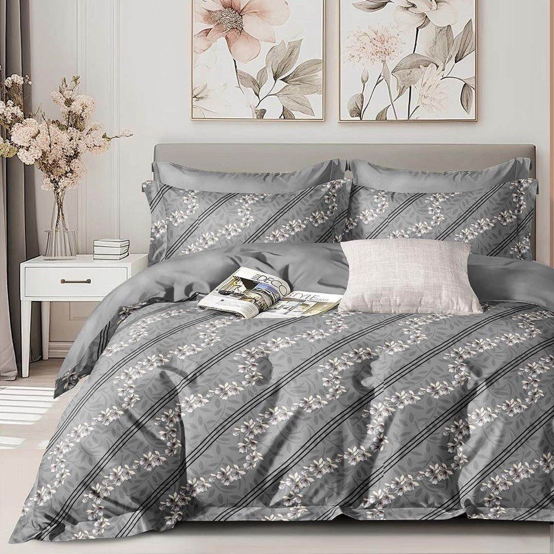 Floral Grace 210 TC Cotton Blend Flat King Bedsheet