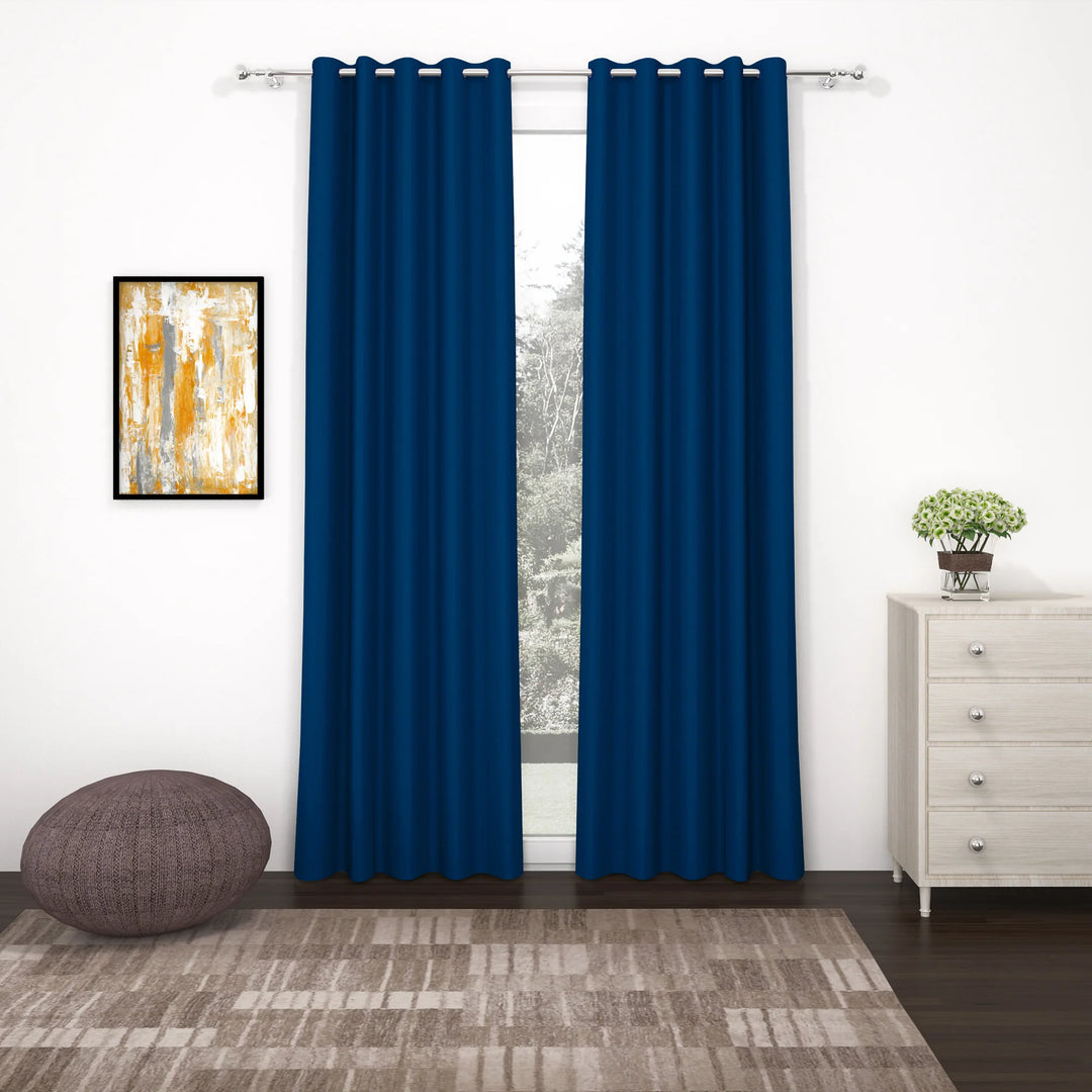 Blue Blackout Faux Silk Room Darkening Window/Door/Long Door Curtains (10210)