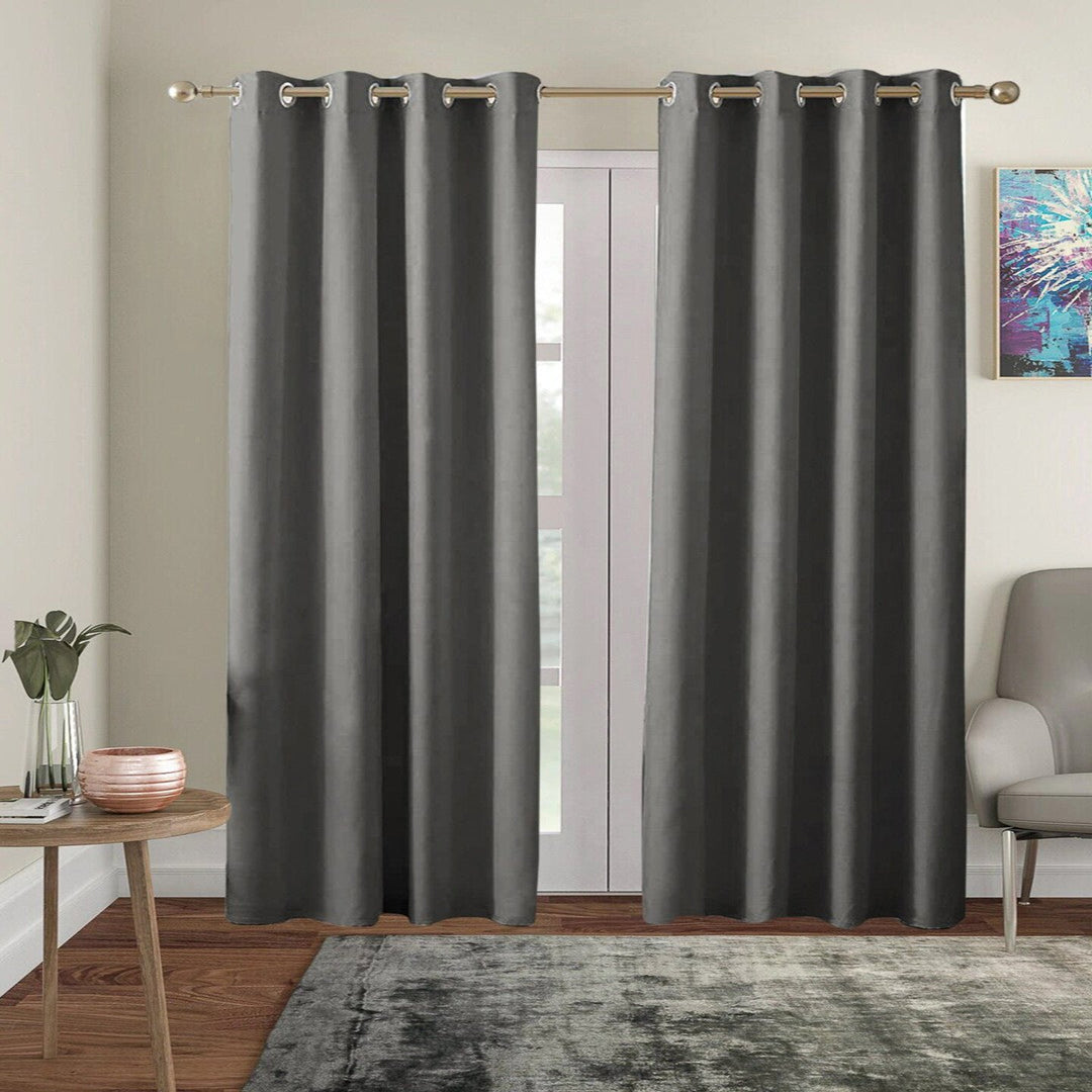 Dark Grey Blackout Faux Silk Room Darkening Window/Door/Long Door Curtains (10208)