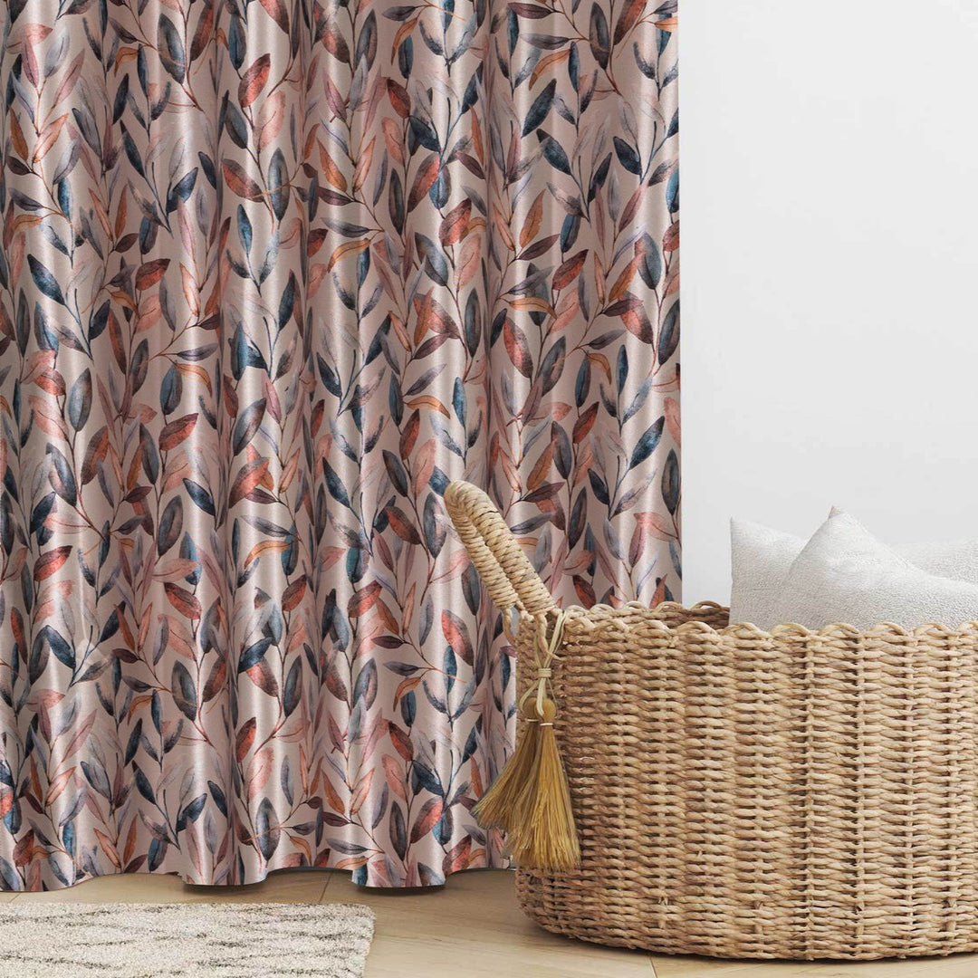 Luxurious Digital Printed Faux Silk Heavy Curtains - Peach Petals