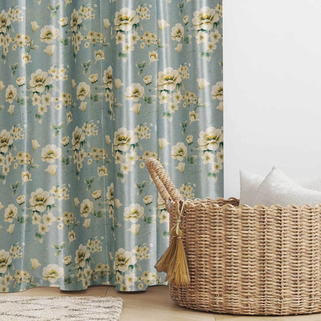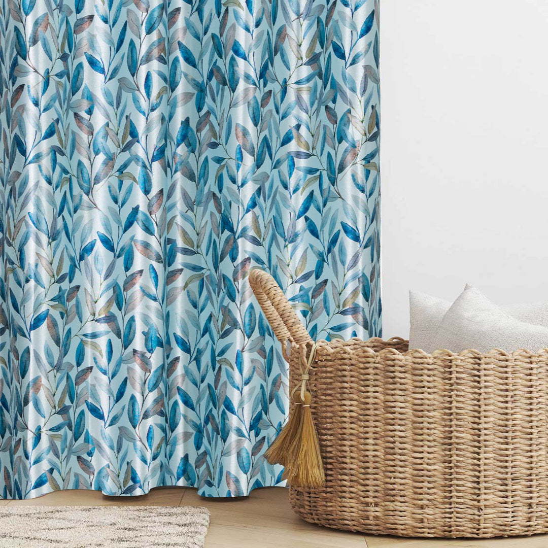 Luxurious Digital Printed Faux Silk Heavy Curtains - Aqua Bale