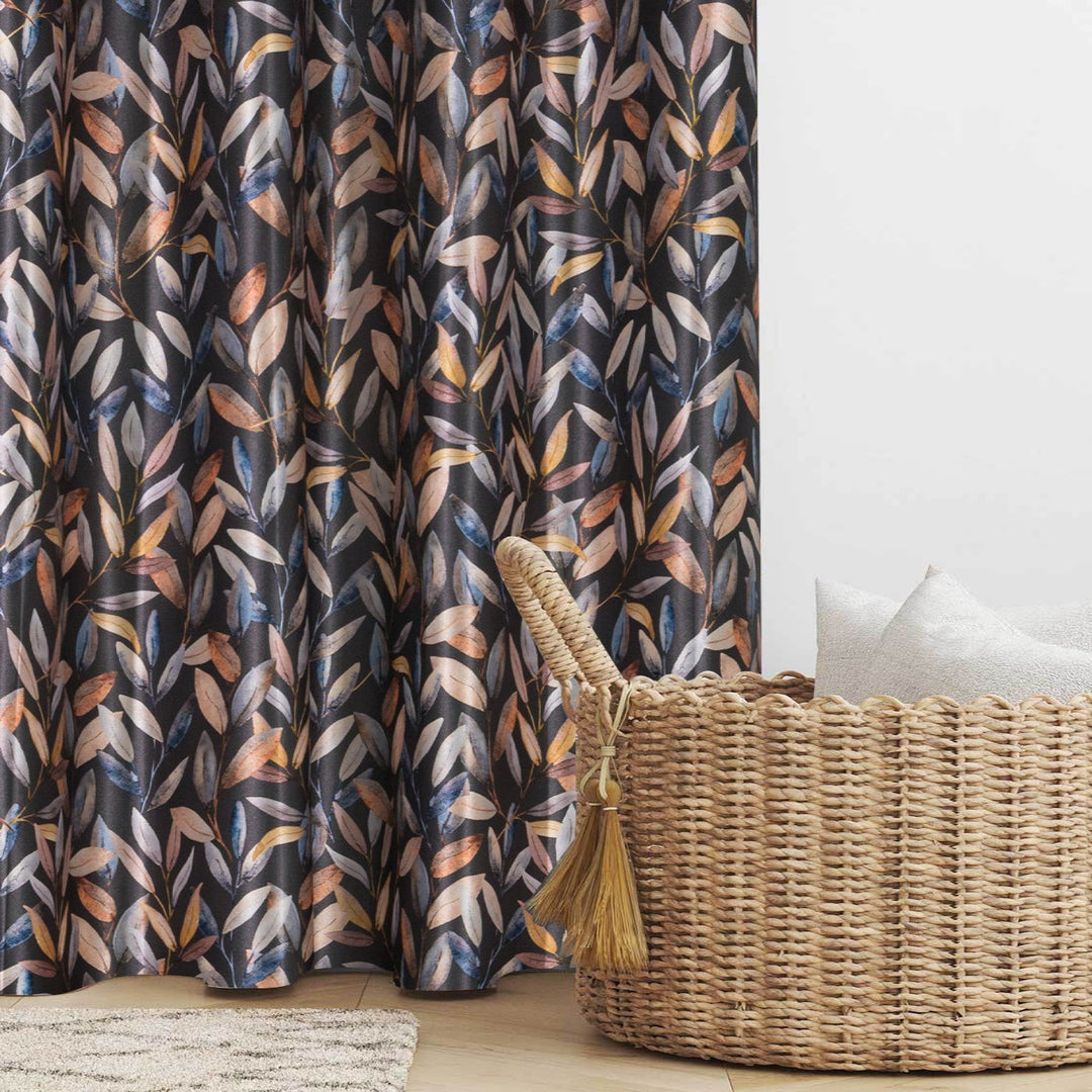 Smart Drape Digital Printed Faux Silk Heavy Curtains - Black