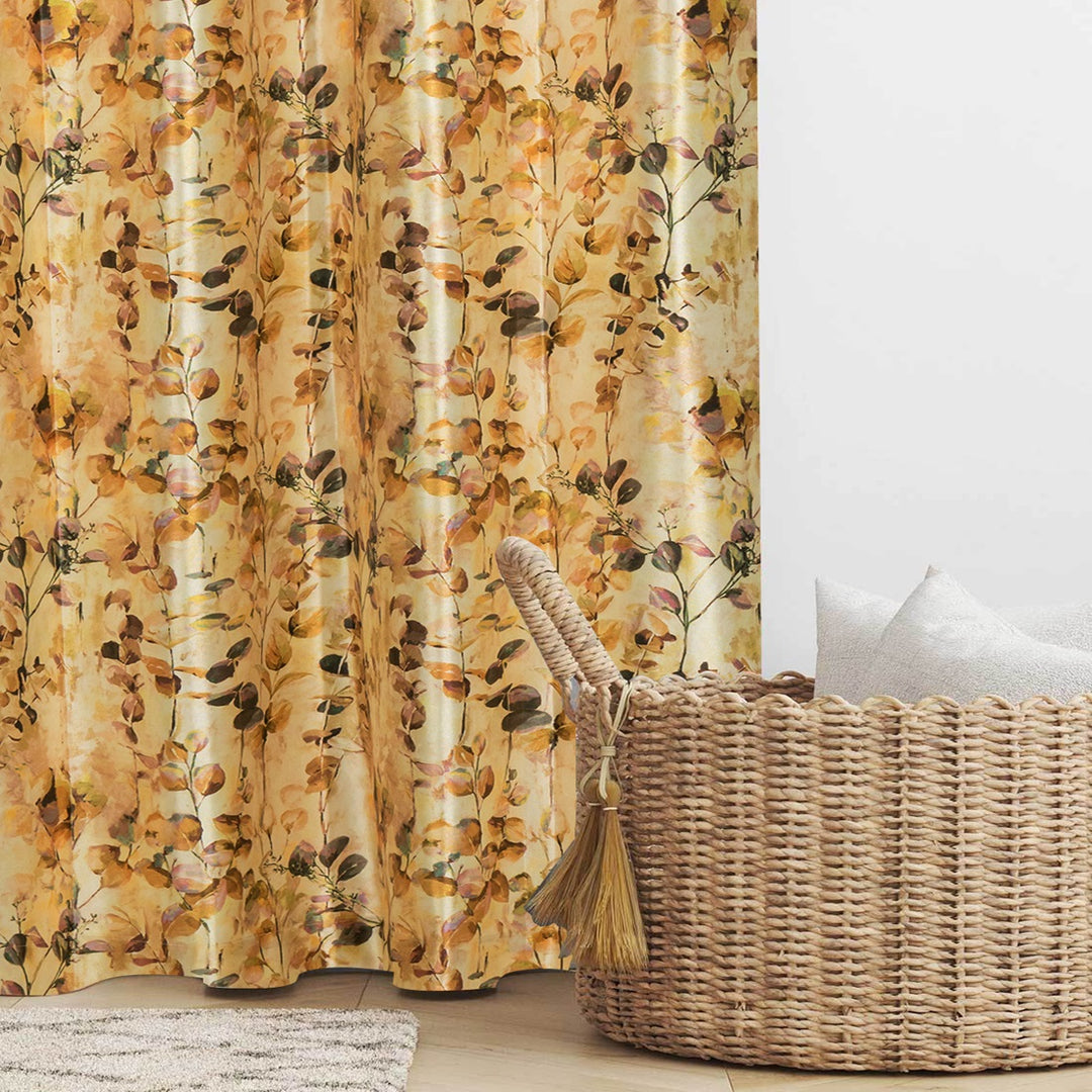 Luxurious Digital Printed Faux Silk Heavy Curtains - Yellow Petals
