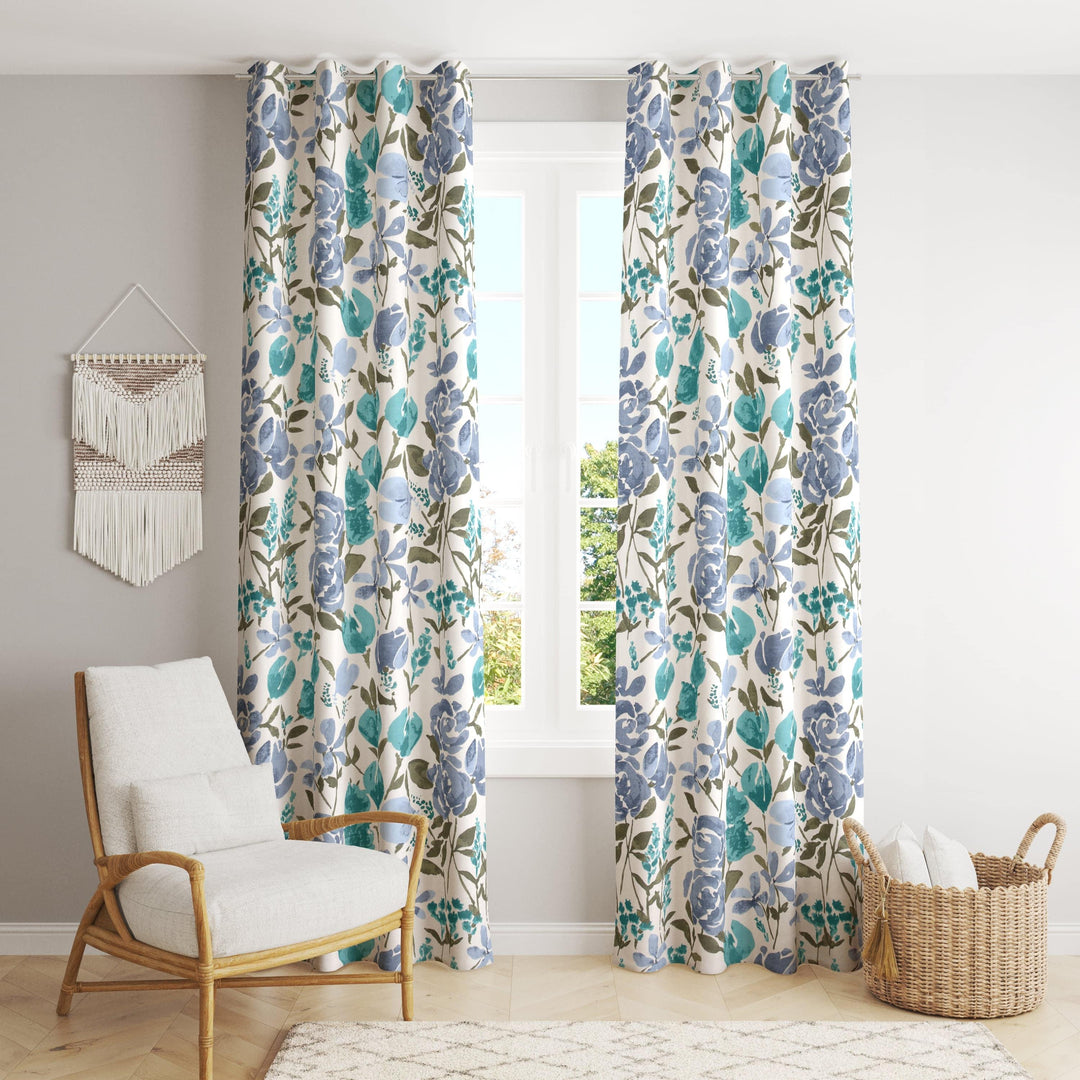Flora Blue Duck Cotton Printed Jaipuri Printed Curtains (100% Cotton)