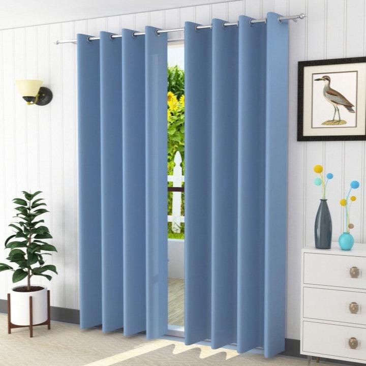 Sky Blue Blackout Faux Silk Room Darkening Window/Door/Long Door Curtains (10205)