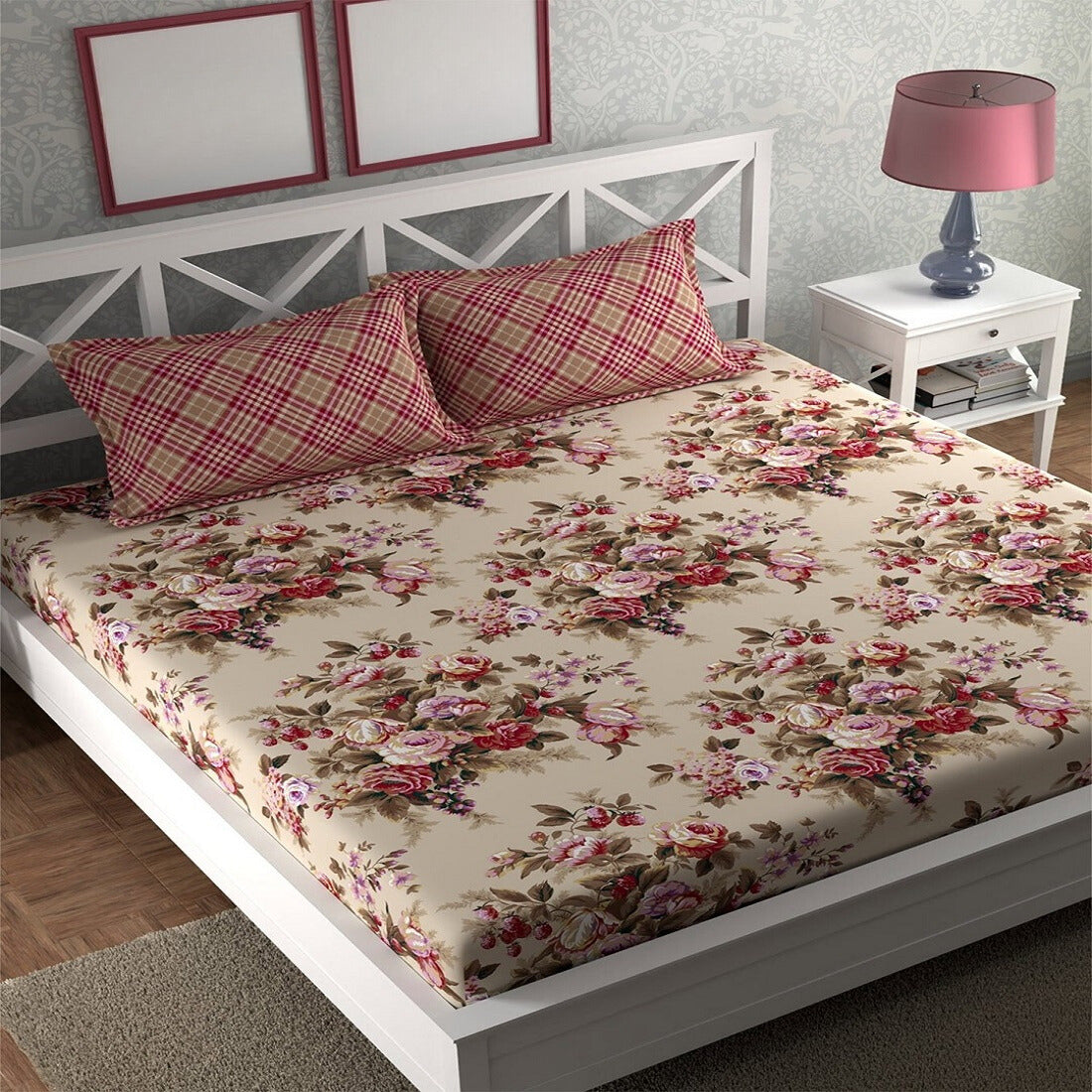 Rose Bunch Elastic Fitted Cotton Blend King Bedsheet