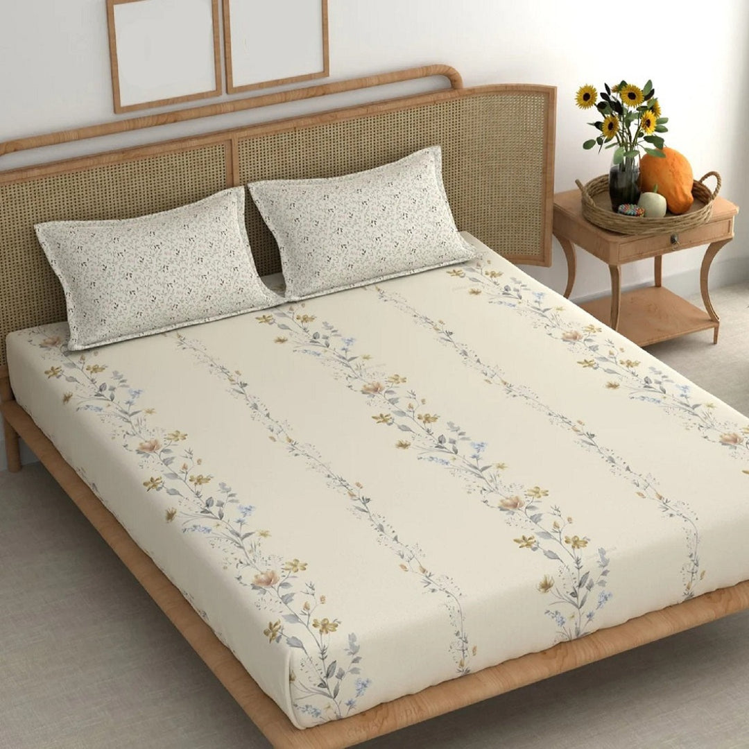 Sunlit Garden Cotton Blend Super King Bedsheet with 2 Pillow Covers (108x108 inches)