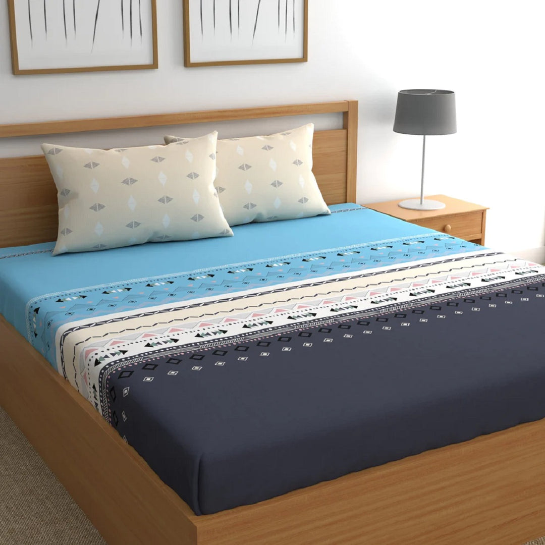 Blue Arrow Cotton Blend Super King Bedsheet with 2 Pillow Covers (108x108 inches)