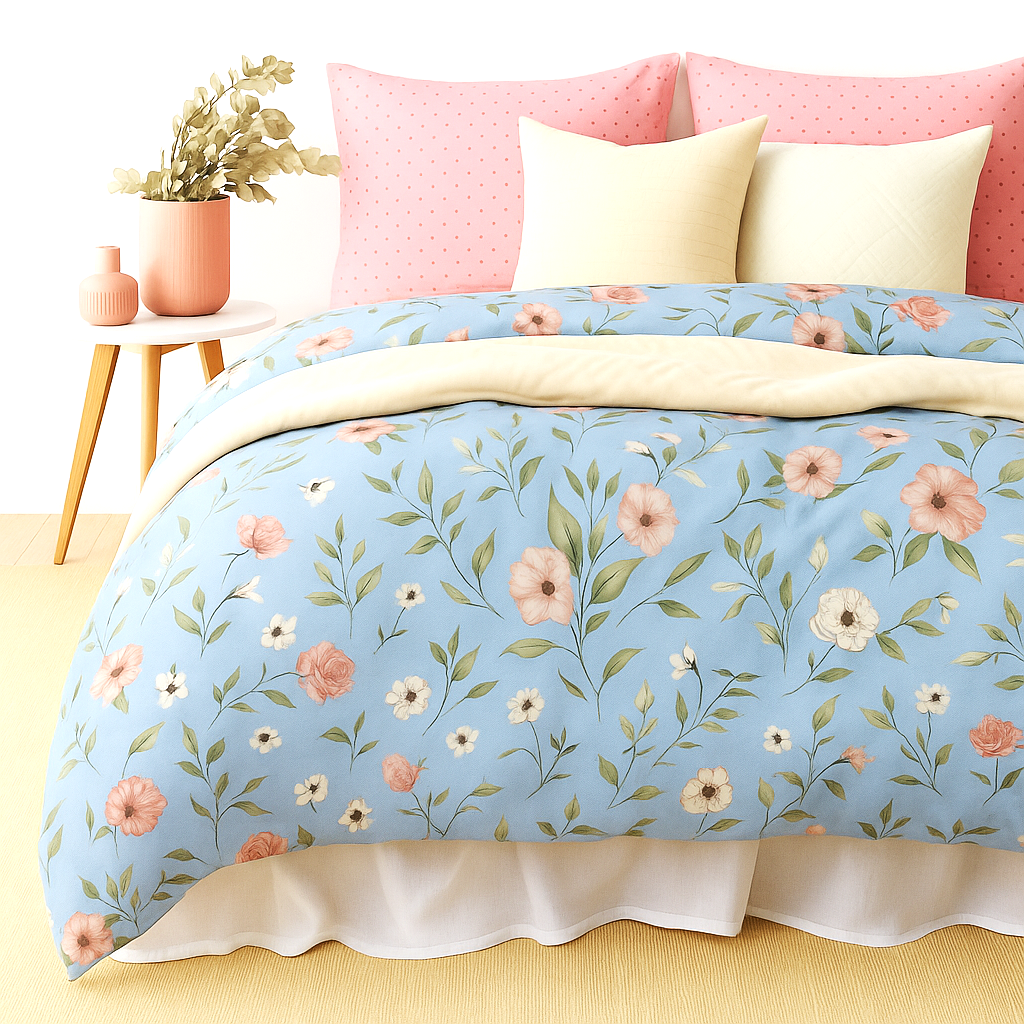 Ethereal Bloom Cotton Blend Super King Bedsheet with 2 Pillow Covers (108x108 inches)