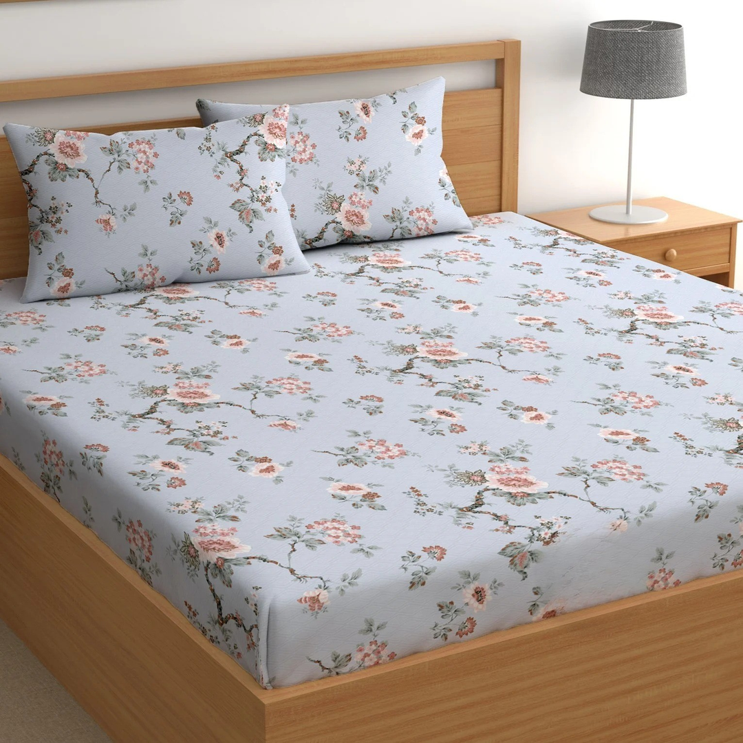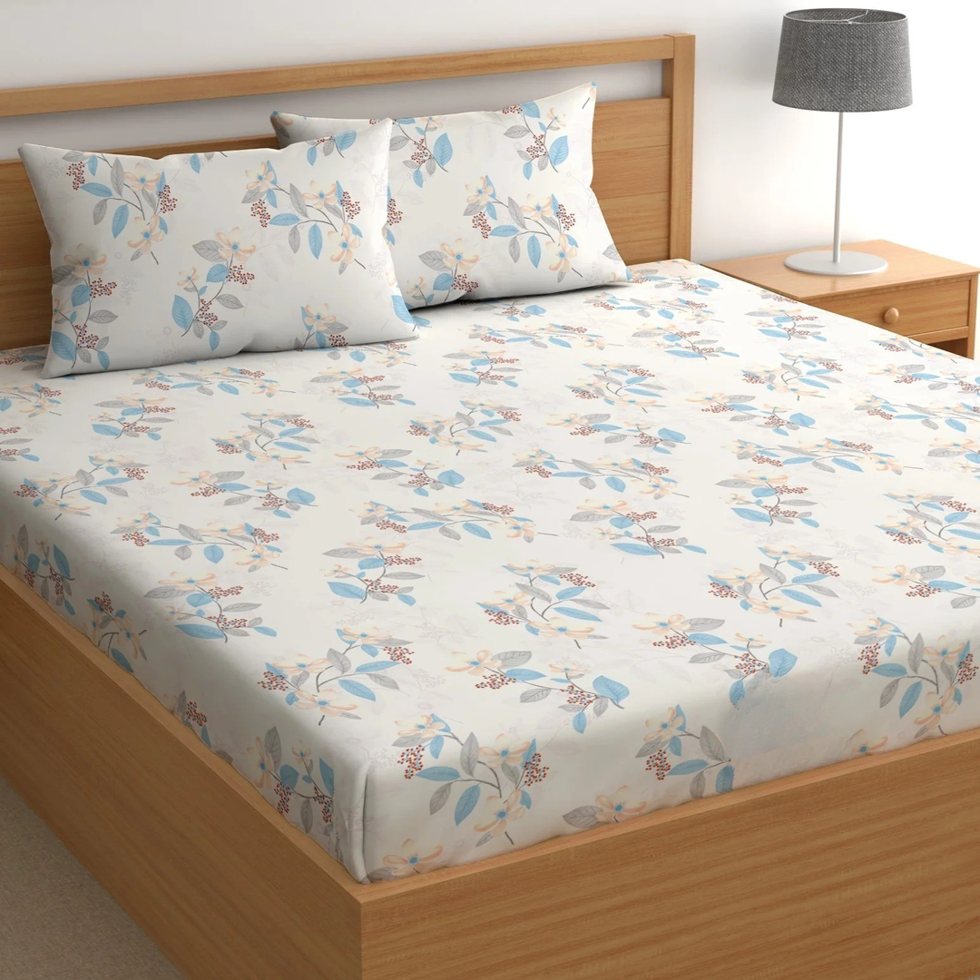 Floral Tranquil Cotton Blend Super King Bedsheet with 2 Pillow Covers (108x108 inches)