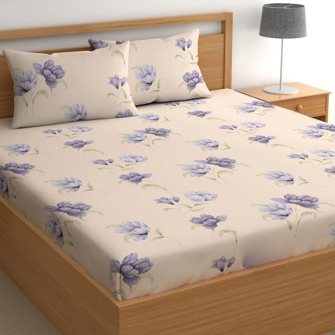 Petal Poise Cotton Blend Super King Bedsheet with 2 Pillow Covers (108x108 inches)